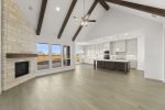 This stunning single-family residence boasts 4 bedrooms and 3 full bathrooms and a powder across a spacious 2,905 square feet. This home features an open floorplan enhanced with an inviting foyer and beautiful gallery as you enter into the cedar-wrapped beams in the spacious Family/Kitchen areas. Enjoy culinary delights in the eat-in kitchen equipped with quartz counters and a large kitchen island. The exterior features a covered patio for outside entertaining, along with a full sprinkler system. Additional highlights include a 2-car with Tandem garage and smart home system. Situated on a corner lot, this home is designed for modern living with thoughtful details throughout.