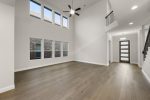 Neighborhood features include 16 SEER dual energy system with smart thermostat | smoke detectors and carbon monoxide detectors per code | security system | LED light bulbs | fully sodded yard with sprinkler system | full gutters | 8′ front door | 5-1/4″ baseboard molding | tankless water heater | radiant barrier roof decking