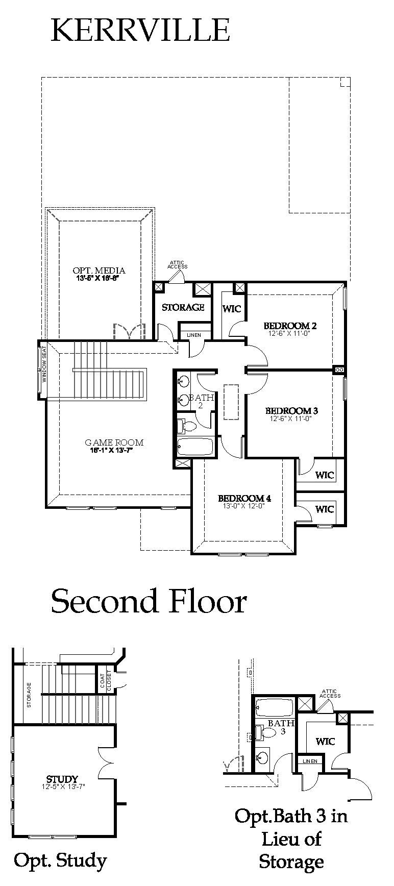 Kerrville D | 2 story | 4 bedroom | 3.5 bath | 2 living | 2 dining | 2.5 car garage