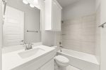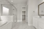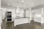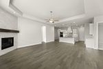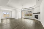 Enjoy quartz counters in all bathrooms, 8′ interior doors, a stunning floor-to-ceiling gas log fireplace, and wood flooring throughout.