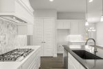 Desirable Bryan Floor Plan featuring 4 bedrooms, 3 full bathrooms, a study, and a game room — all on one level! The gourmet kitchen includes quartz countertops, a large island, under-cabinet and pendant lighting, stainless steel LG digital appliances, a 36″ 5-burner gas cooktop, vent hood, and double ovens.