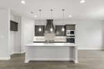 - Pendant lighting above the island