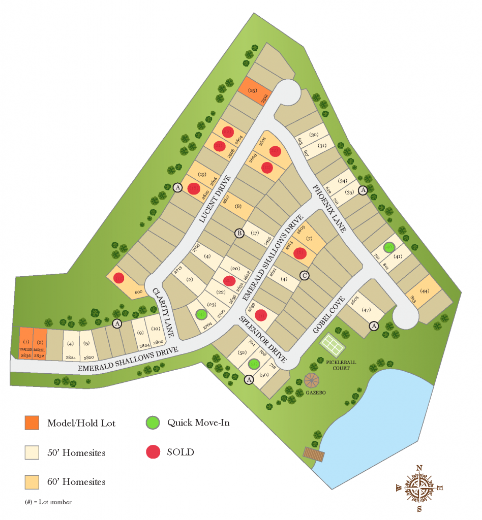 - Amenities to include pickleball courts, lake with pier and jogging trail, and pavilion with benches